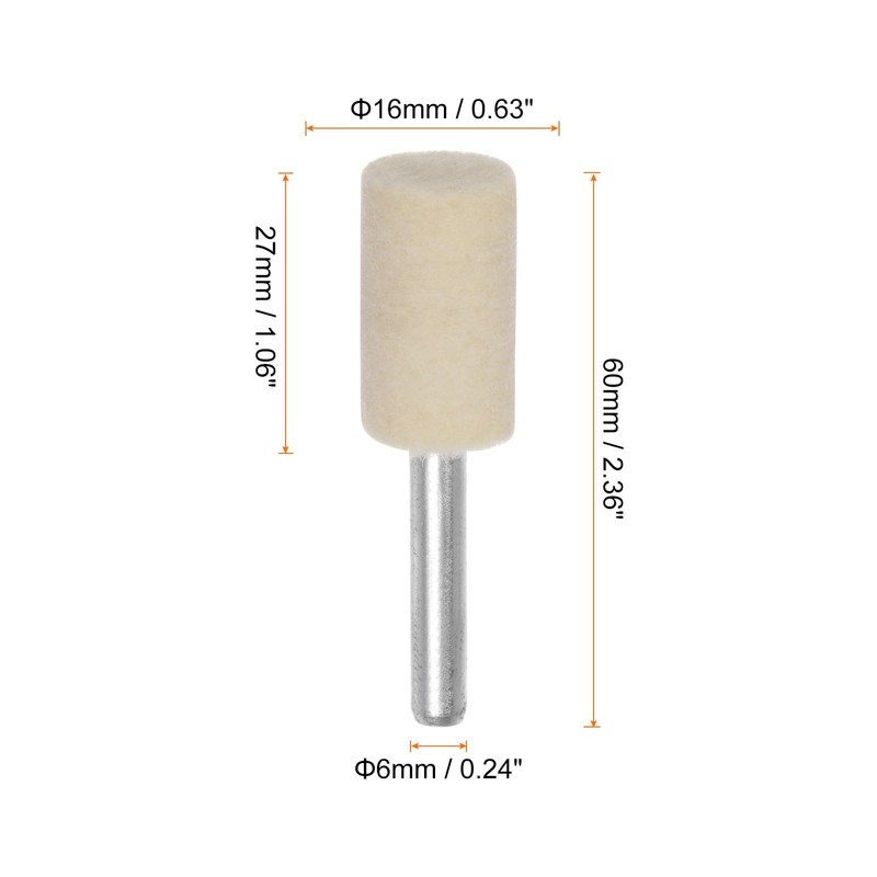 uxcell Wool Felt Mounting Mandrel Point Cylinder Polishing Bit Barrier Felt Polishing Buffing Wheel for Rotary Tools 10 Pieces 0.6 inch (16 mm) Head 0.2 inch (6 mm) Shank