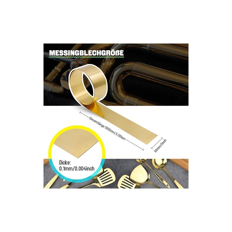 Uxney Uxney Brass Sheet, Brass Plate Gold Foil Sheets Brass Sheet Roll 1000 mm x 50 mm x 0.1 mm for Crafts, Electrical Repairs, DIY Projects