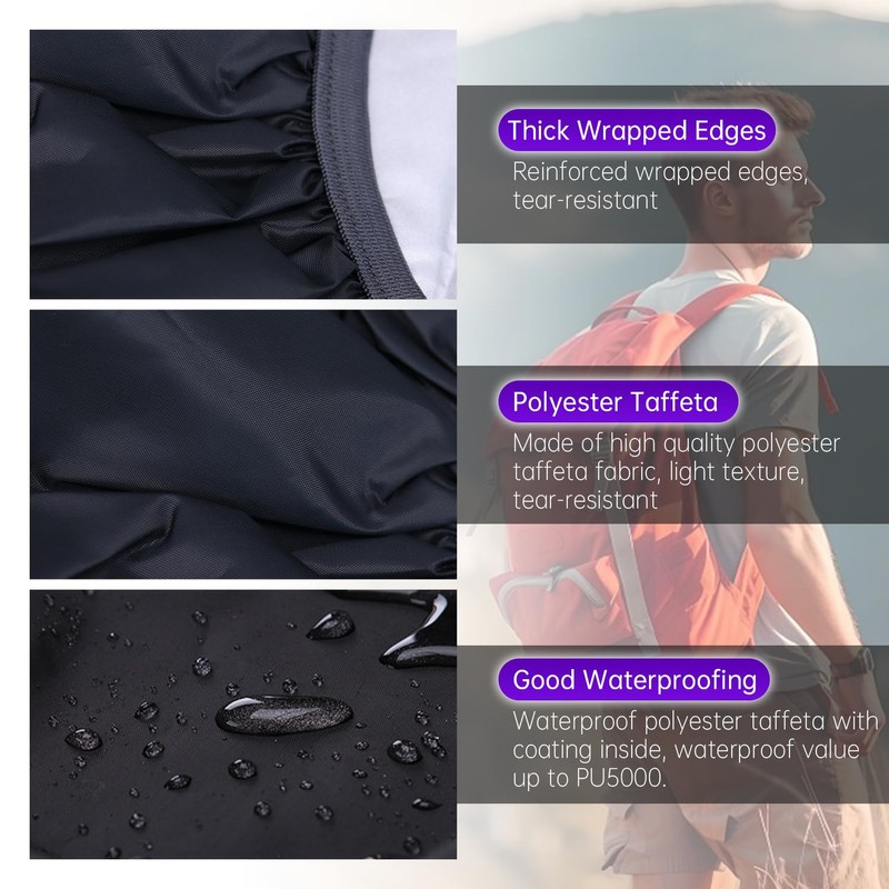 - 【Superior Waterproof Protection】: Crafted from 190T polyester taffeta with a silver-coated interior, this rain cover boasts a high waterproof rating of 1500mm. It effectively shields your backpack and belongings from rain and moisture, ensuring they stay dry even in heavy downpours.