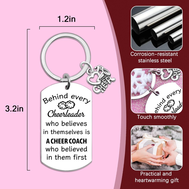 - Cheer Coach Gift/Cheer Coach Keychain:The cheer coach gift keychain features the inspiring words: "Behind every cheerleader who believes in themselves is a cheer coach who believed in them first." A heartfelt thank you gift for cheer coach that celebrates their dedication and impact.