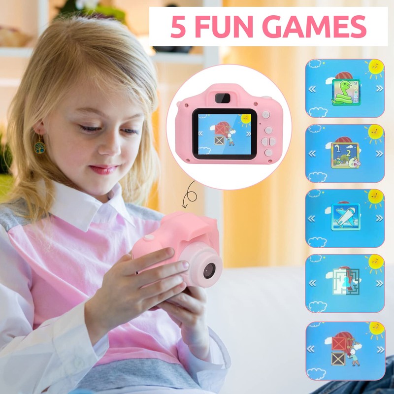 - 【Kids Favorite Games】Child camera has 5 games, which can allow children to exercise their thinking skills when playing, so that their childhood is not only enjoyment, but also can increase knowledge.