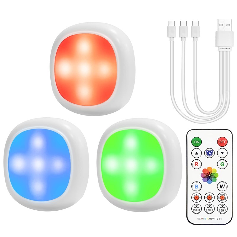 - [Rechargeable Puck Lights] No need to buy AAA batteries, the under cabinet lights with built-in 700 mAh rechargeable lithium battery. Fully recharged in just 1.5 hours, eco-friendly and money-saving. Enjoy 15-20 hours of continuous lighting with the 3 in 1 Charging cable (Type C), charging up to 3 puck lights simultaneously.