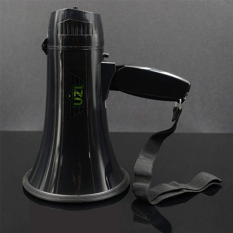 - FEATURES: The UZI-MP-15W Megaphone has a built in microphone, siren mode, recording, adjustable volume, sound playback. The record and replay audio function will keep your voice on command and they'll be sure to hear your message over and over. The siren function serves as a blast of sounding alert, works as an airhorn