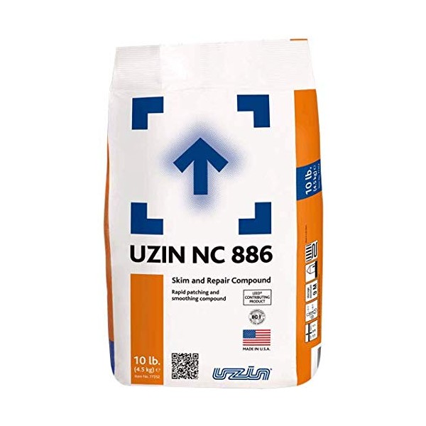 UZIN NC 886 is a rapid setting, quick drying smoothing compound for repair, filling and patching. It can be used on a variety of substrates to repair subfloor imperfections prior to the installation of most flooring products. UZIN NC 886 has very fine aggregates enabling it to be applied by trowel from a true featheredge up to 1/2" (12.5 mm) depth in a single application. It has excellent bonding properties to a variety of different substrates, often without the use of a primer. The quick drying formulation of UZIN NC 886 allows for most floor coverings to be installed within 15 – 20 minutes on absorbent substrates. UZIN NC 886 is an ideal material for skim coating and covering/smoothing minor imperfections. For interior use only. UZIN NC 886 can be used as embossing filler over existing well bonded residential sheet vinyl and cushion vinyl floor coverings. Floor coverings must be thoroughly cleaned to remove any surface contaminants before being primed with UZIN PE 280. Bond tests must be performed in advance of finish floor covering installations. Comes with a smooth / U notch patching trowel. The trowel is smooth on 2 sides and has 1/16" x 1/32" U notches on the other 2 sides for deeper gauge troweling or adhesive troweling.