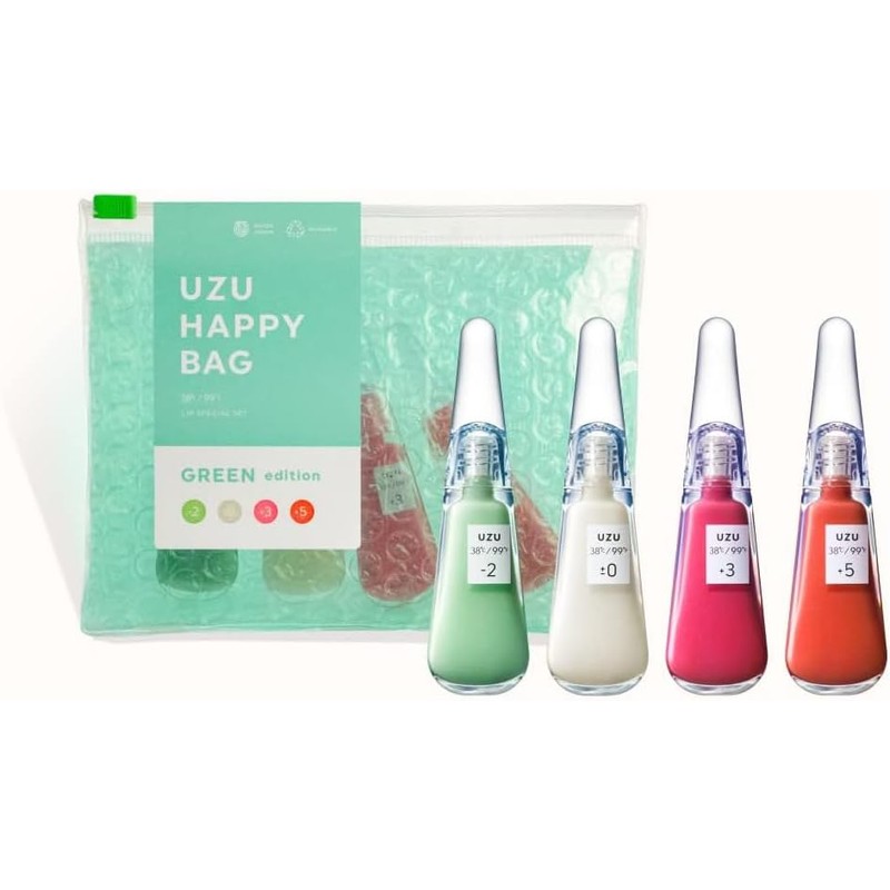 UZU BY FLOWFUSHI HAPPY BAG GREEN EDITION UZU Lip Series Luxury - 4 piece Set