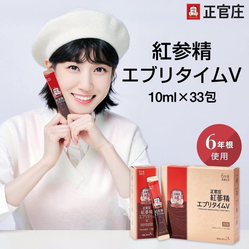 正官庄 (ジョンガンジャン) 紅参精エブリタイムV (バリュー) 紅参(ホンサム) 6年根 高麗人参 濃縮 スティック サプリ 33包 (10ml×33包) 国内正規品