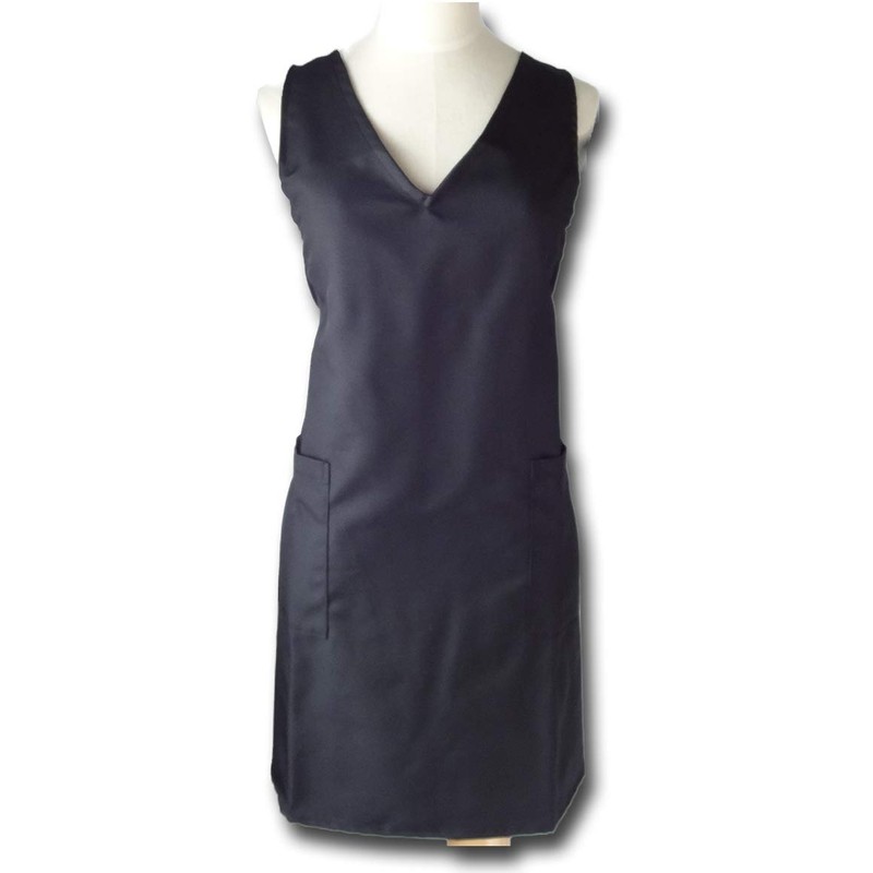 - Elegant style black apron with V-shaped chest Suitable for restaurants and hospitality businesses such as cafes. Pockets on both sides