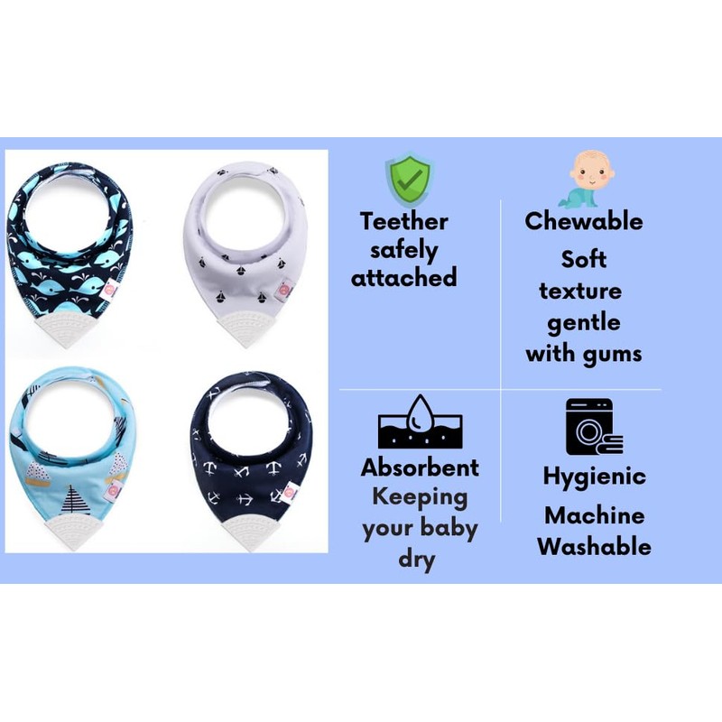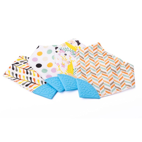 V&D HOME - Baby and Toddler Dribble Bib with Teether | 0-18 month Teething Bibs for Baby and Toddler | 100% BPA & Pthalate Free | Bandana bib with teether | 4 Pack (Colour and Blue)