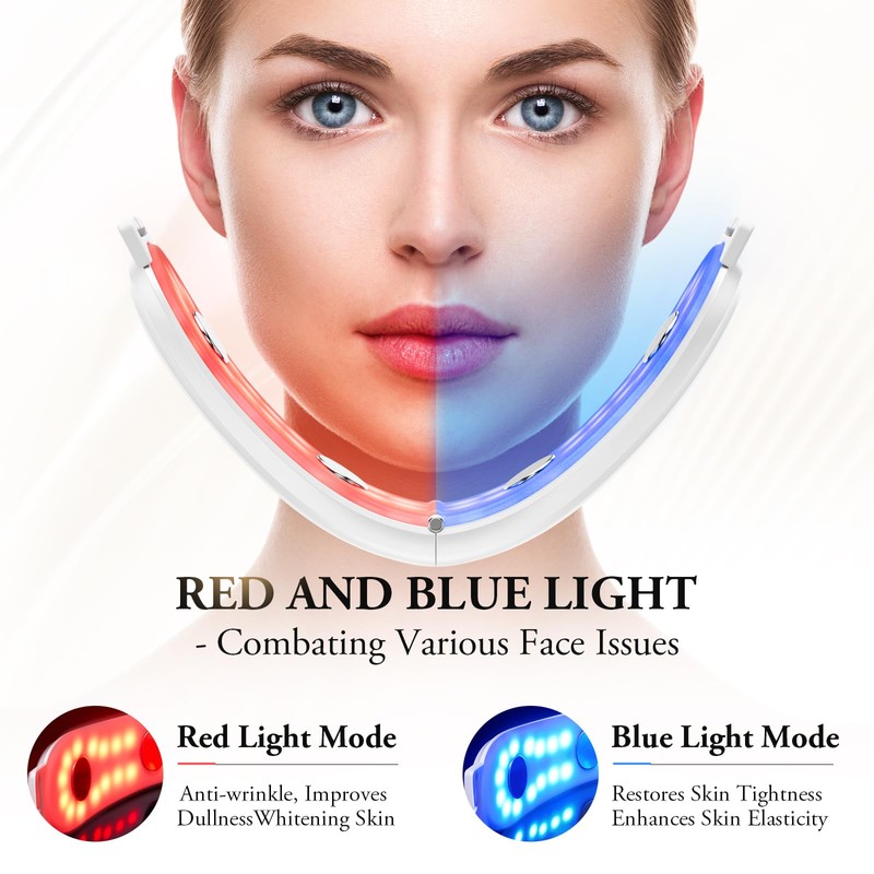 - ✨【Red and Blue Light Therapy】The shape face massager has 36 red and blue dual-color LED beauty lamp beads. The red light mode lifts and tightens, promotes collagen production, and restores skin elasticity; the blue light mode cleans and soothes the skin.
