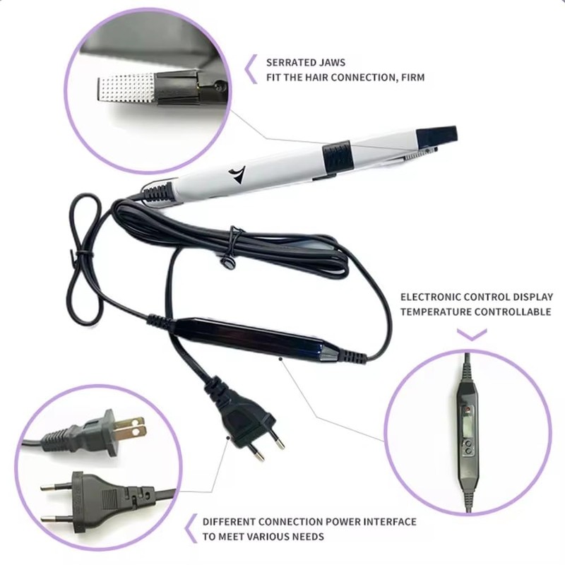 V Light Hair Extension UV Glue Remover Plier Machine, Electric Temperature Adjustable Hair Extension Tape Removal Solution Tool ✂️ Micro-Serrated Grip Technology Our dense micro-teeth (0.5mm spacing) securely grasps even the thinnest bonds without slippage. Unlike standard pliers that damage hair shafts, our surgical-grade stainless steel teeth distribute pressure evenly - 43% gentler on hair according to lab tests.  ⏰ 90-Second Full Removal Process Integrated heating plates (176°F-248°F adjustable) melt all adhesive types: keratin bonds UV glue tape-ins No more sticky residue or tedious picking. Complete removal in 3 quick steps: clamp-heat-swipe.  🌡️ Smart Temp Control = Zero Damage Manual fine-tuning. Maintains ±2°F accuracy to protect hair integrity while effectively breaking down tough adhesives.
