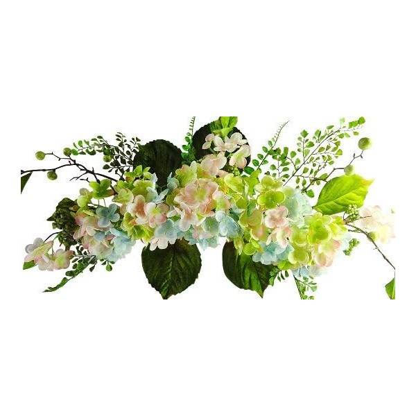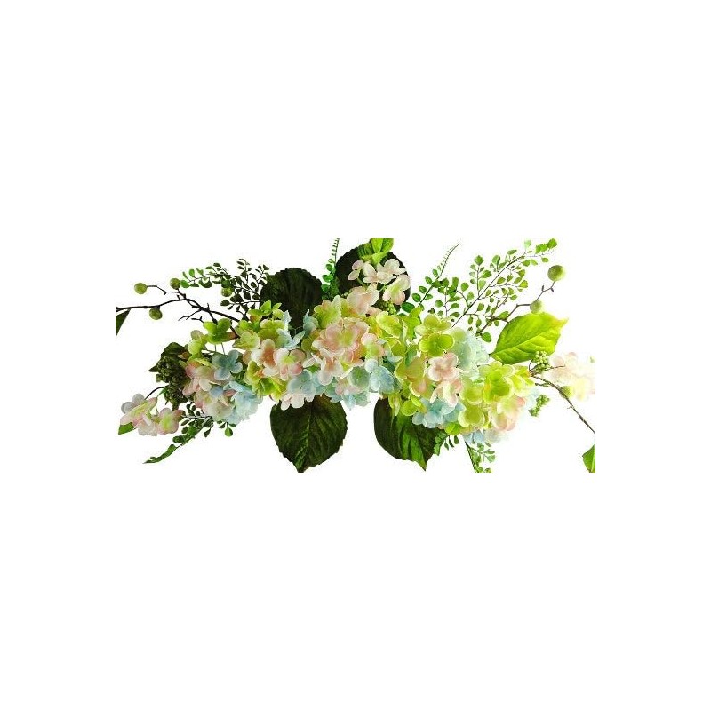 - Enjoy this gorgeous spring hydrangea swag! Hang it on any door or wall and let these refined blossoms do the work. Charming decoration hydrangea swag. This hydrangea swag is perfect for an indoor display to enhance your interior or elegant home decor. Bright and uplifting, it's the ideal swag for any home decor. It makes the perfect accent piece for your front door, living room, and dining room, adding a touch of timeless beauty to your home with this exquisite SWAG.