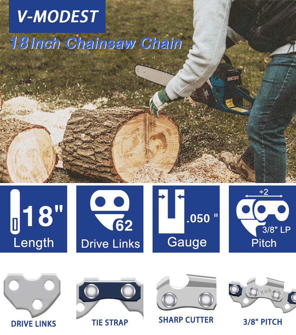 - Size: 18" .050" Gauge 3/8" LP Pitch 62 Drive Links (The same saw can be equipped with different bar lengths. Please verify your parameters to ensure this chain works with your machine. )