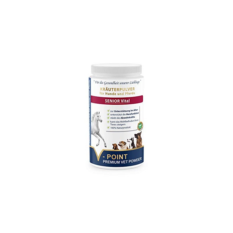 V-POINT Senior Vital to strengthen the defenses - support heart function - premium herbal powder for horses and dogs - with vitamin C, fenugreek, black cumin, rose hips (500 g)