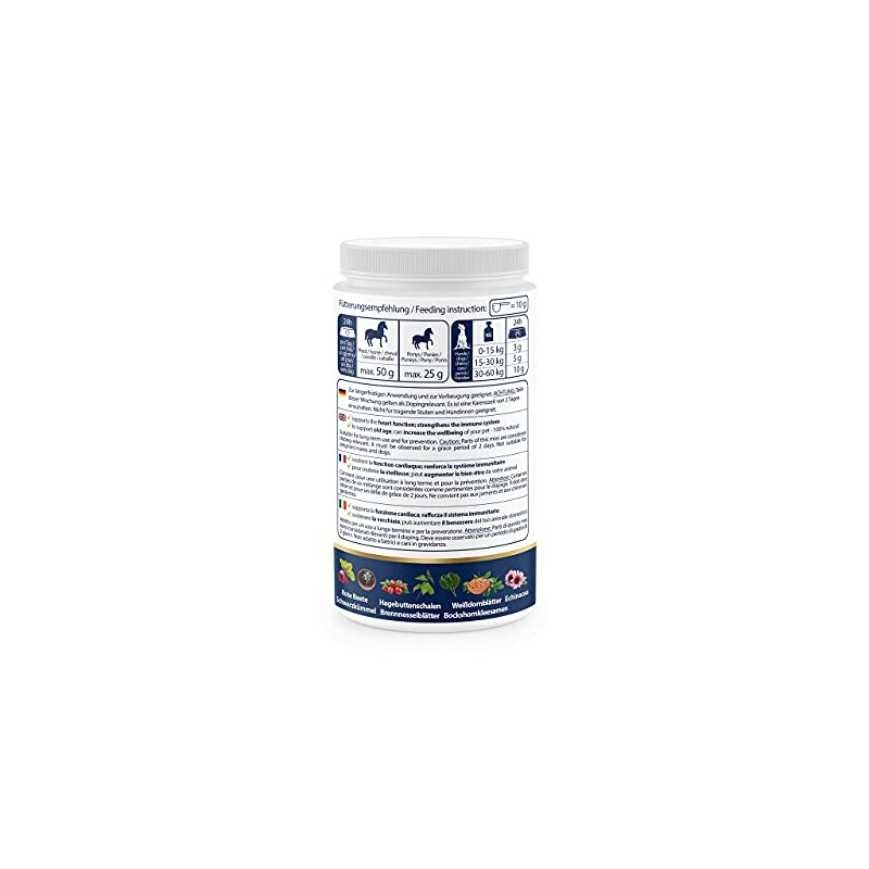 - Premium herb powder - to strengthen the immune system and the heart - selected natural ingredients - highly effective supplementary food for horses and dogs.