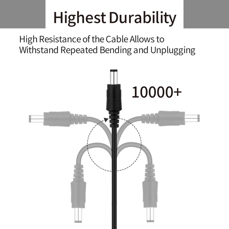 - Power output plug: Outer diameter 0.2 inch (5.5 mm) x inner diameter 0.08 inch (2.1 mm) Power cable length: 47.2 inches (120 cm) Polarity: Center Plus