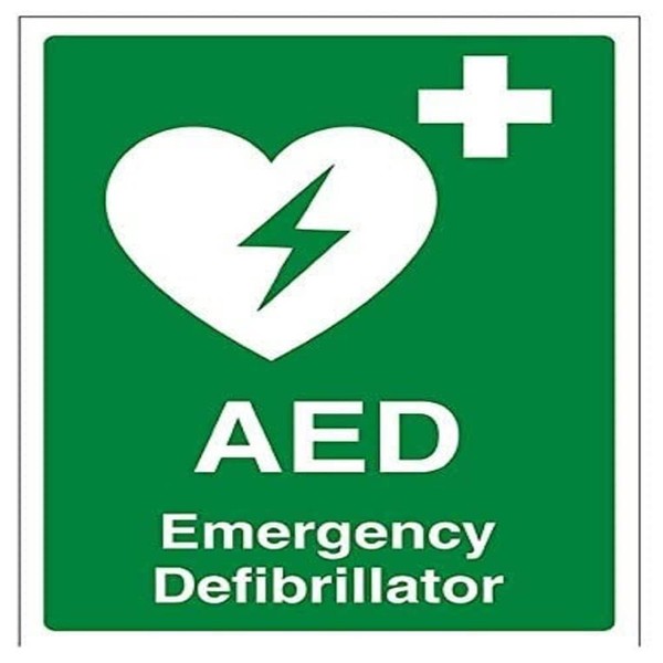 V Safety AED Emergency Defibrillator Sign - 150mm x 200mm - 1mm Rigid Plastic