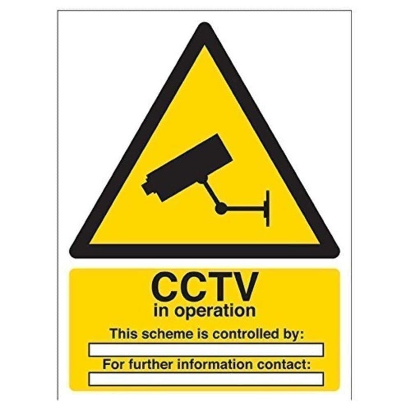 - Portrait Orientation. Sign reads "CCTV In Operation. For The Purpose Of. For Information Contact"