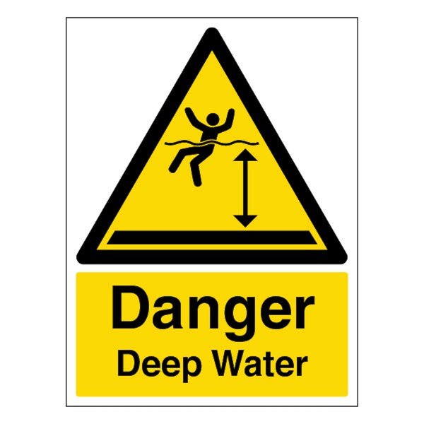 V Safety Danger Deep Waters - Portrait 200 x 300mm - 2mm Rigid Plastic Safety Sign