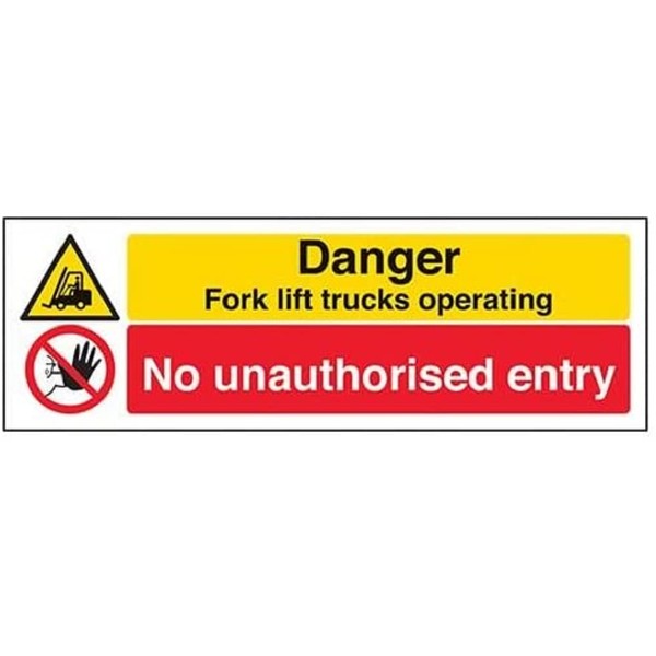 V Safety Danger Fork Lift Trucks Operating No Unauthorised Entry Sign - 300mm x 100mm - 1mm Rigid Plastic