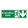 V Safety Evacuation Route Arrow Down 300 x 100 mm - 2mm Super-Tough Rigid Plastic Safety Sign