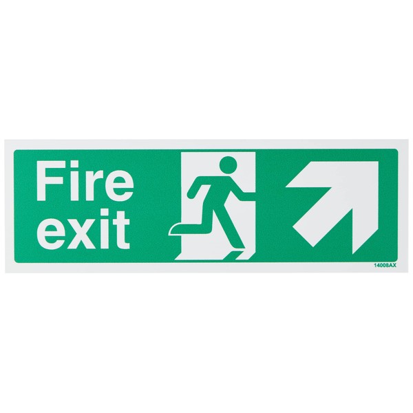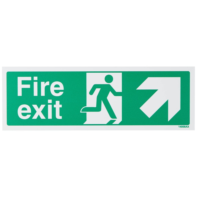 V Safety Fire Exit Arrow Up And Right Sign - 300mm x 100mm - 1mm Rigid Plastic