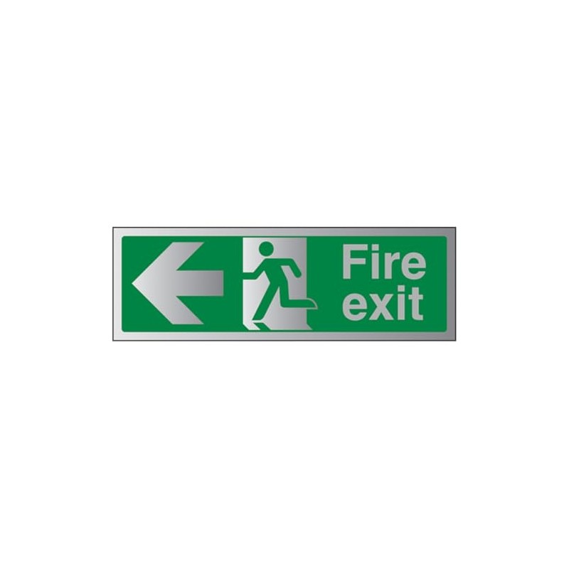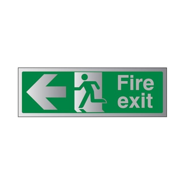 V Safety Fire Exit-Fire Exit Arrow Left Sign - 300 mm x 100 mm - 3 mm Brushed Alu Comp Safety Sign