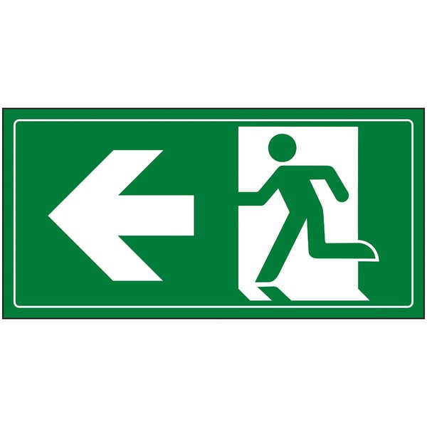 V Safety Fire Exit Man Running Left Sign - 300x150mm - Green 1mm Rigid Plastic