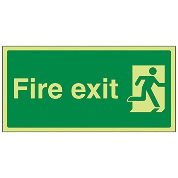 V Safety Glow In The Dark Final Fire Exit Man Right Sign - 300mm x 150mm - Rigid Plastic