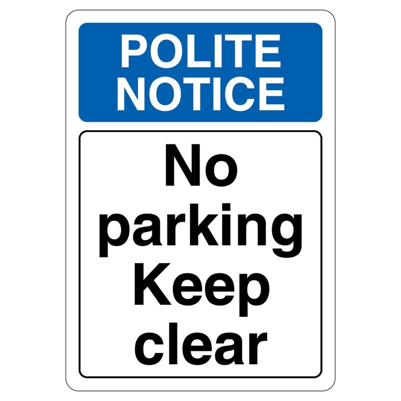 - The Polite Notice No Parking Keep Clear sign serves as a courteous reminder, ensuring areas remain unobstructed and accessible at all times.