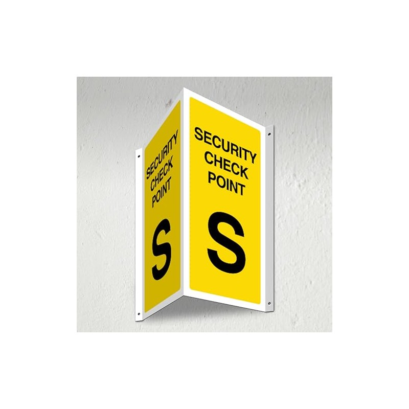 V Safety Security Check Point S - 3D Corridor Sign 340 x 300 mm - 3mm Indoor Palboard + Fold & Drill Holes - Customised