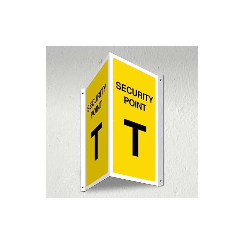 V Safety Security Point T - 3D Corridor Sign 340 x 300 mm - 3mm Indoor Palboard + Fold & Drill Holes - Customised