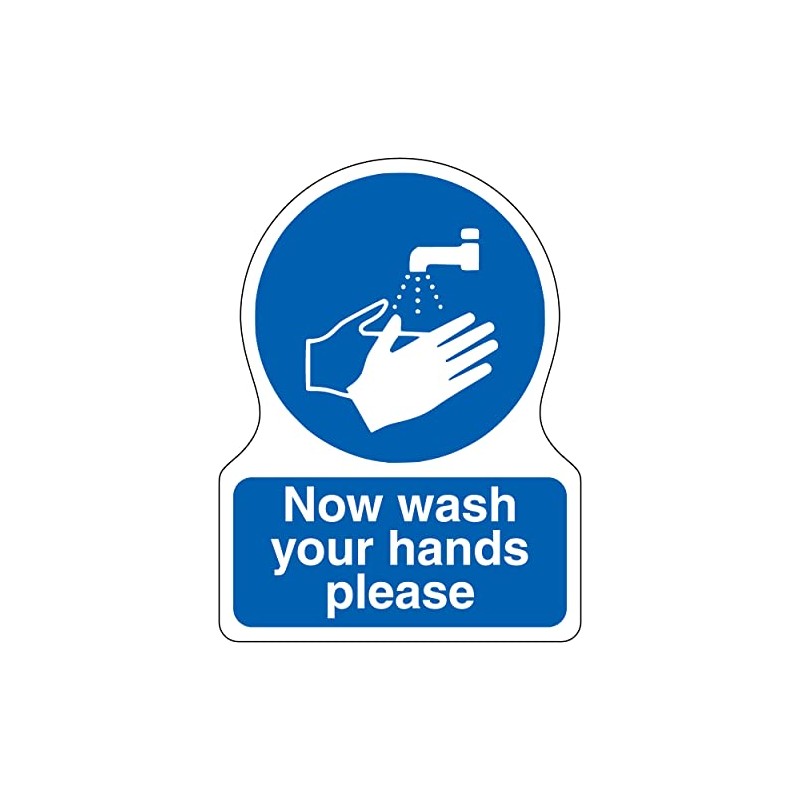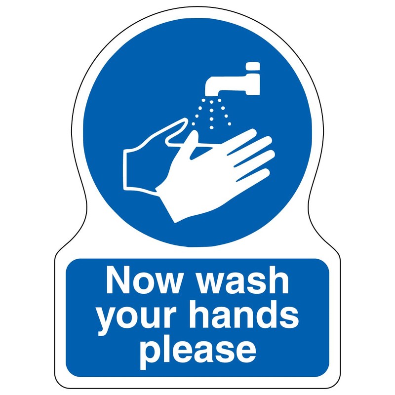 V Safety Shaped Safety Sign - Now Wash Your Hands Please - 150X200-1MM Rigid Plastic