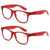 V.W.E. 2 Pairs Transparent Neon Color Deluxe Reading Glasses - Comfortable Stylish Simple Readers Magnification (Red, 3.00)