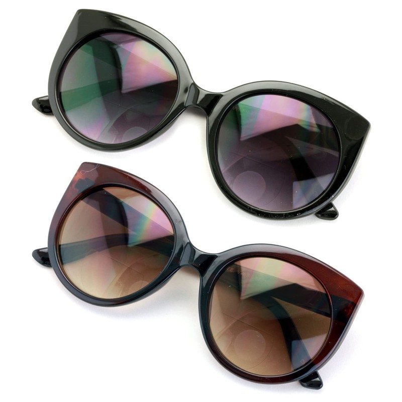 - 2 Pairs of Slightly Oversized Large Lens Fashion Reading Bi-focal Sunglasses. Bifocal Readers for people who loves fashion. Perfect for reading at the beach with UVA and UVB protection. Oversized Round Sunglasses with Bifocal Reading Window at the Lower Portion of the Lens. Tinted Gradient Lens.