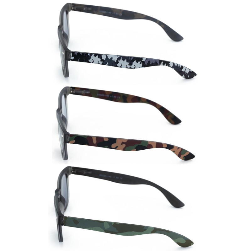 V.W.E. 3 Pairs Matte Military Camouflage Print Classic Comfortable Reading SunGlasses Tinted Reader Outdoor UV Protection (3 Pairs Assorted, 2.00, x)