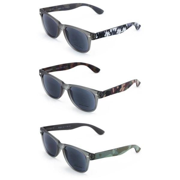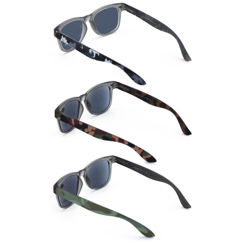 V.W.E. 3 Pairs Matte Military Camouflage Print Classic Comfortable Reading SunGlasses Tinted Reader Outdoor UV Protection (3 Pairs Assorted, 3.00, x)