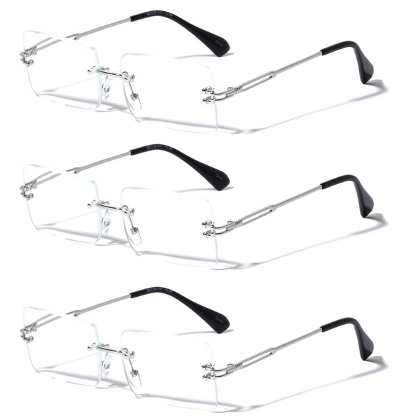 V.W.E. 3 Pairs Men Metal Fully Rimless Rectangular Reading Glasses - 140mm Width Modern Classy Clear Lens Reader (3 Silver, 1.25, diopters)