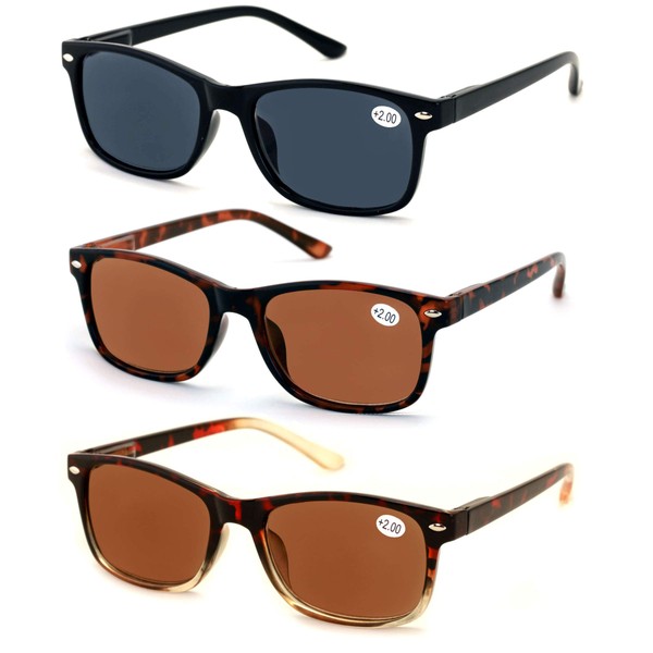 V.W.E. 3 Pairs Rectangular Lightweight Reading SunGlasses Outdoor Readers Glasses - NOT Bifocal (1 Black 2 Brown, 2.50)