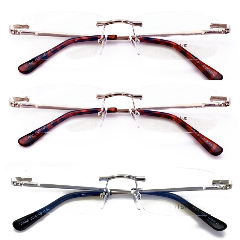 V.W.E. 3 Pairs Slim Rimless lightweight metal anti blue light blocking UV reading glasses - clear lens computer reader (2 Gold 1 Silver, 2.75, multiplier_x)