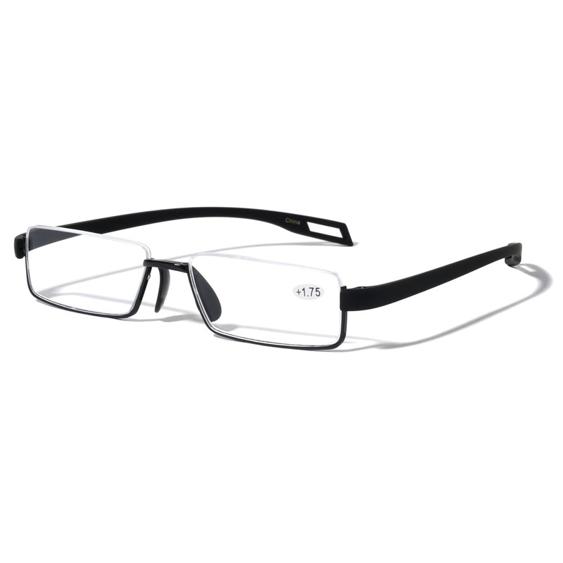 V.W.E. Men Large Wide Featherweight Slim Half Rim Memory Flex Reading Glasses - Anti-reflective AR Coating Extended Temple (Black, 1.25)