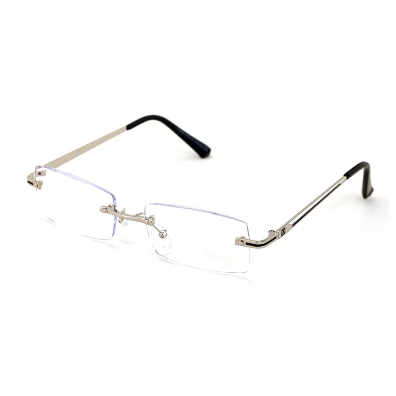 V.W.E. Men Metal Rimless Diamond Cut Anti Blue Blocker UV Reading Glasses - Clear Lens Readers (Silver, 2.75, multiplier_x)