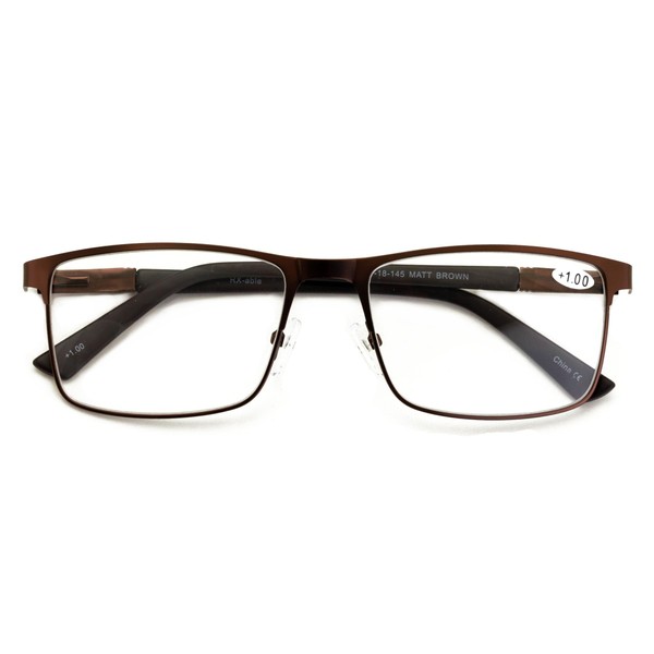 V.W.E. Men Premium Optical Frame Wide Large Head Reading Glasses Rectangular Metal - Clear Lens Reader DRM02 (Bronze, 1.75, x)