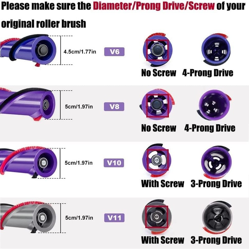 - V10 Roller Brush Works with 3 Prong Heads with Screw at The end