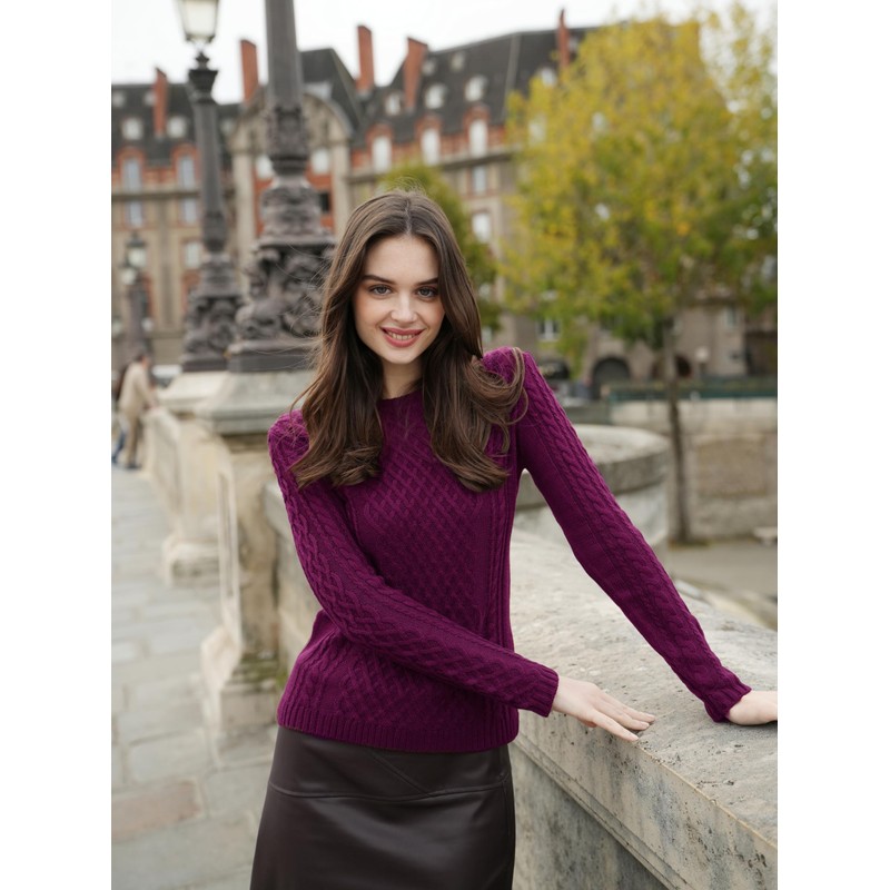 - Crew Neck Sweater- Stylish Honeycomb Cable Knitted Make you Look Elegant and Slim
