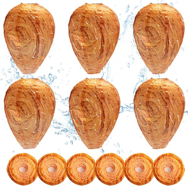 v2croft 6 Pack Wasp Nest Decoy, Hanging Fake Wasp Nest to Keep Away Wasps, Hornets and Yellow Jackets, Outdoor Use and Waterproof