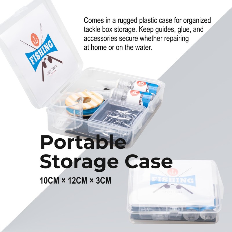 • COMPACT PORTABLE STORAGE CASE - Comes in a rugged plastic case for organized tackle box storage. Keep guides, glue, and accessories secure whether repairing at home or on the water.