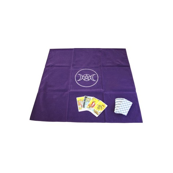 Tarot cloth with embroidered pentagram and crescent moon mark.