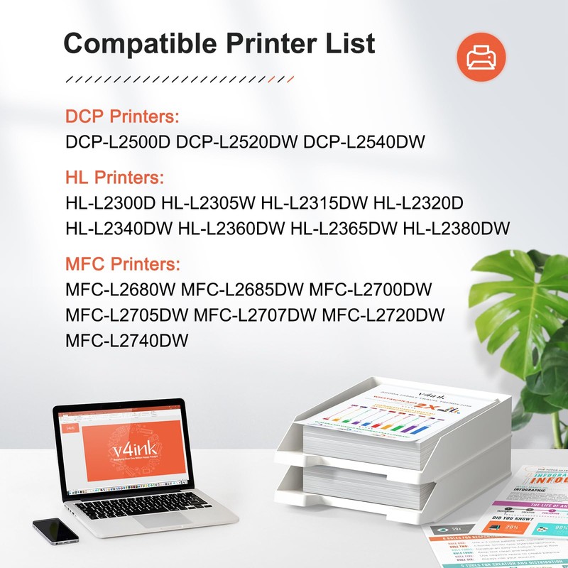 - Suitable Printer List: Brother DCP-L2500D DCP-L2520DW DCP-L2540DW; HL-L2300D HL-L2305W HL-L2315DW HL-L2320D HL-L2340DW HL-L2360DW HL-L2360DN HL-L2380DW HL-L2365DW; MFC-L2680W MFC-L2685DW MFC-L2700DW MFC-L2700DN MFC-L2705DW MFC-L2707DW MFC-L2720DW MFC-L2740DW Printer.