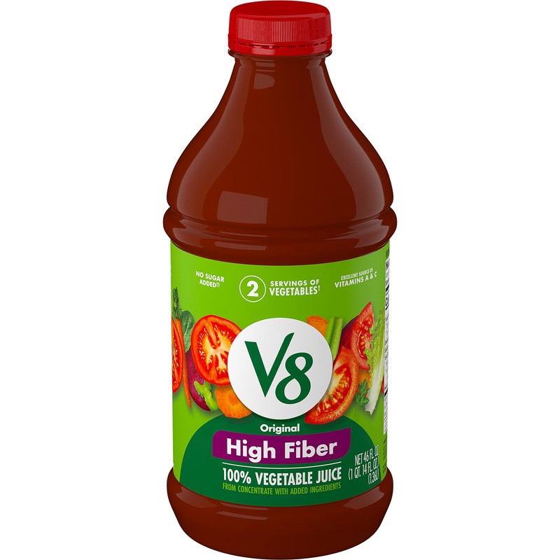 V8 High Fiber Original 100% Vegetable Juice, 46 fl oz Bottle (6 Pack)