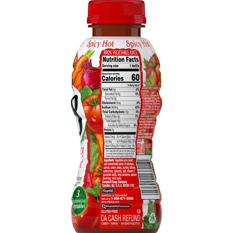 - Delicious Vegetable Juice: 12 pack of 12 fl oz juice bottle of V8 Spicy Hot 100% Vegetable Juice